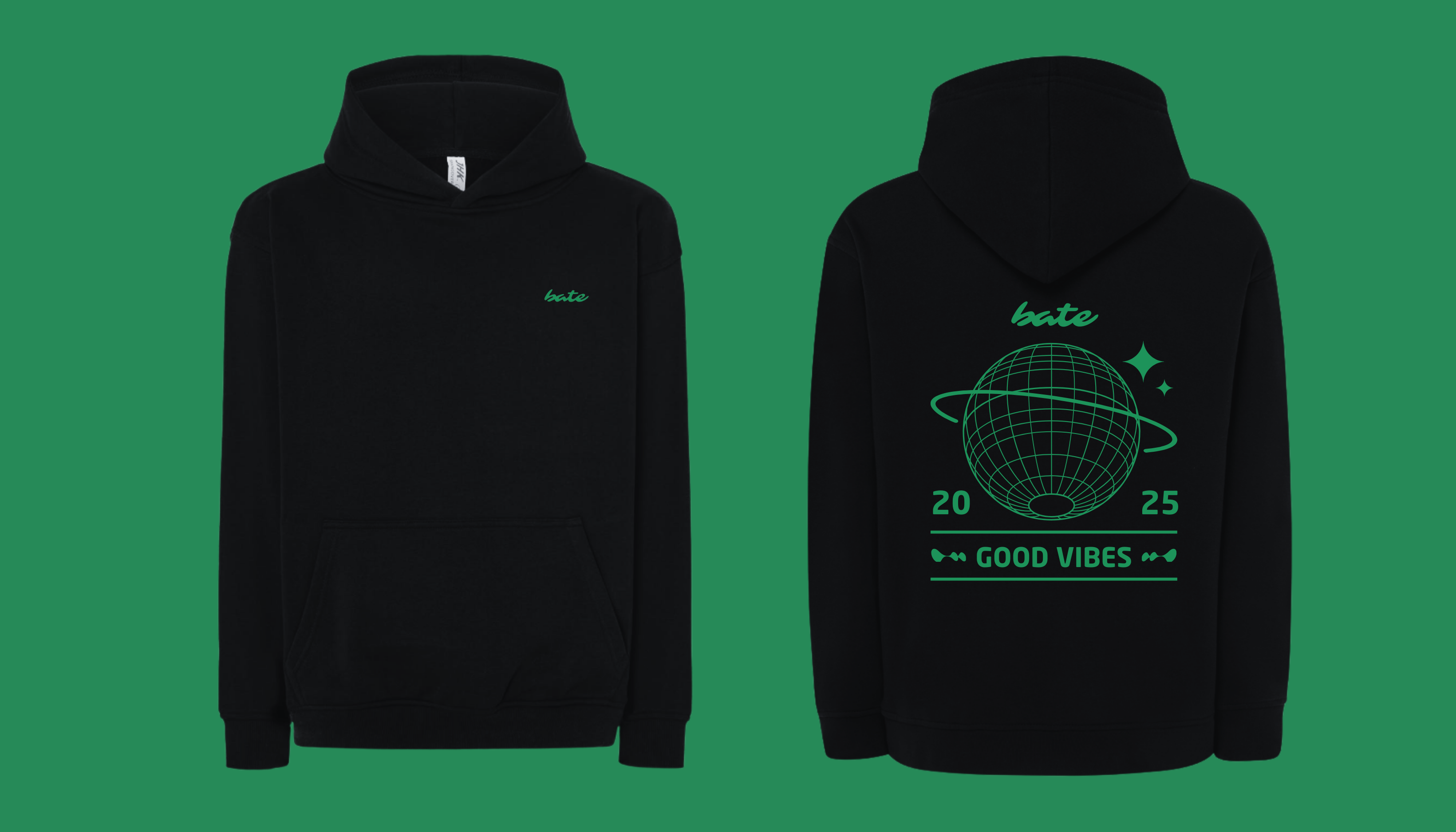 Design de globo e logo BATE. "Good Vibes" para o novo ano.